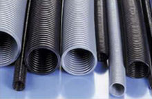 Light / Standard weight, flame retardant nylon (PA6 / PA12) & UPVC corrugated flexible conduit. Colour Black.